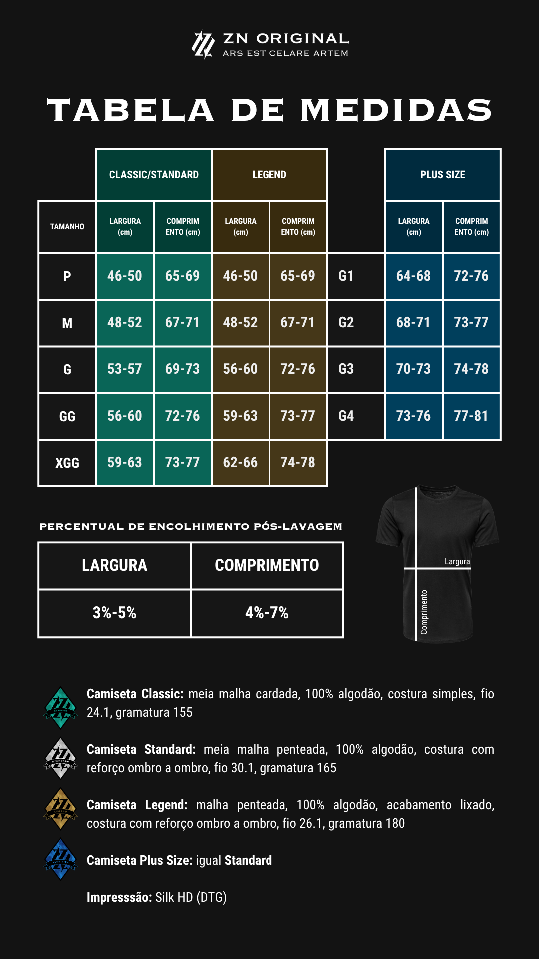 • Confira atentamente nossa tabela de medidas! Recomendamos a compra de um tamanho MAIOR que o seu de costume.