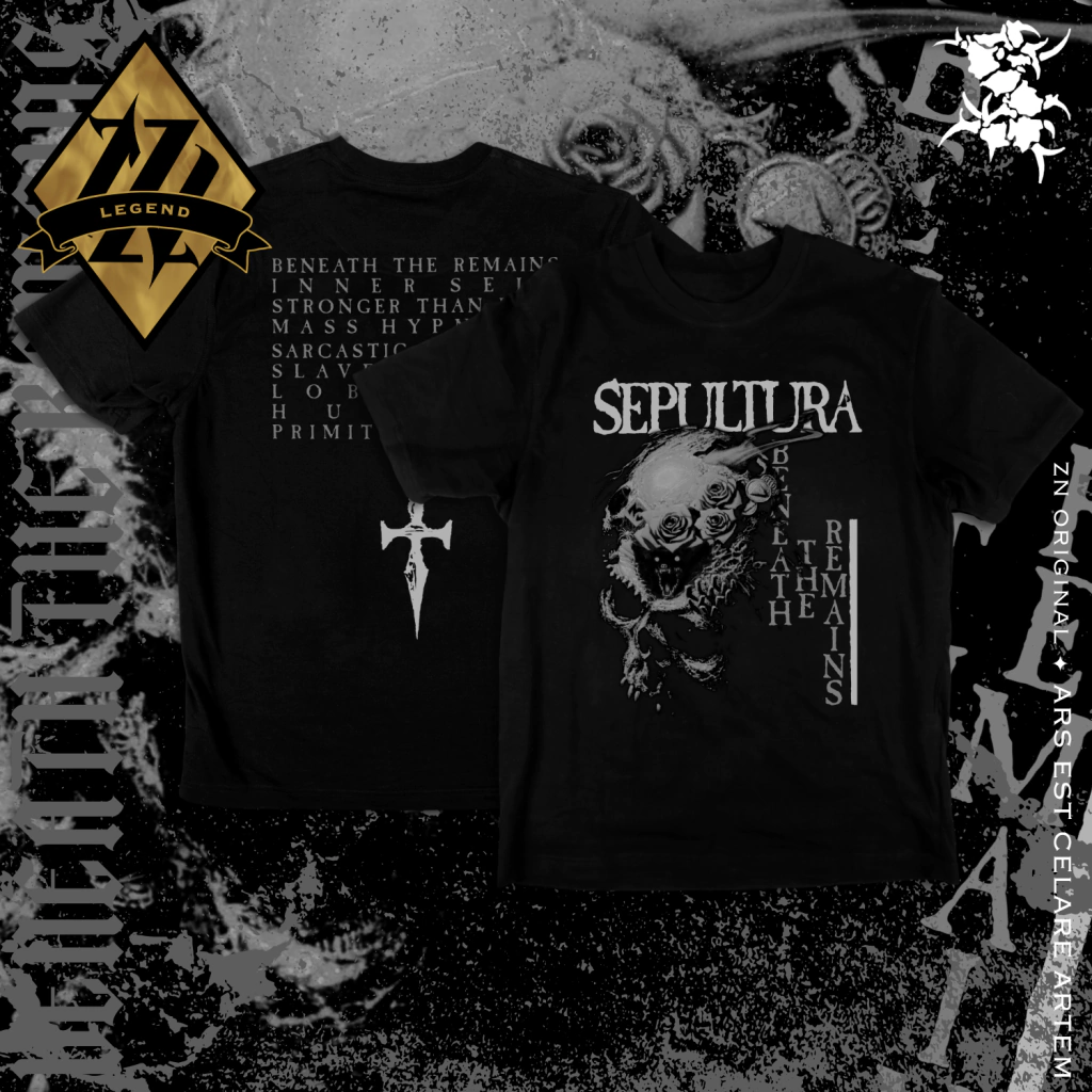 SEPULTURA DO BRASIL estreando aqui na ZN com 4 cores na estampa inspirada no Beneath The Remains, terceiro disco de estúdio da banda, lançado em 89.